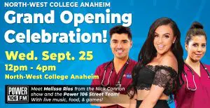 ANAHEIM, Calif.—North-West College (NWC) is preparing to host a Grand Opening Celebration of its Anaheim Campus this Wednesday, September 25, from 12–4 p.m. at 511 Brookhurst Street in the City of Anaheim. The event marks the arrival of the same excellent programs North-West College is known for in its new Anaheim location. Along with the chance to tour the campus and learn more about the College’s programs, the Grand Opening will also feature Power 106 FM, with Melissa Rios from the Nick Cannon morning show and the Power 106 Street Team.