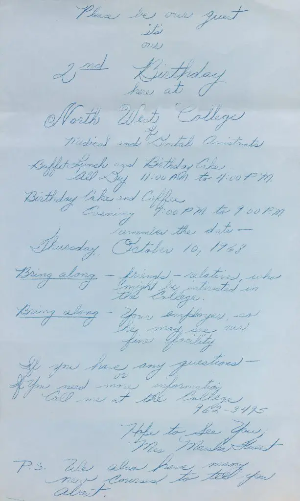 College Founder Marsha Fuerst had a vision to help underprivileged individuals improve their careers and lives through quality career training. She saw short-term programs as a great way for individuals to enter and advance in the health care field. More than five decades have passed since Marsha’s vision first came to life, but her passion to see students succeed remains at the heart of North-West College.