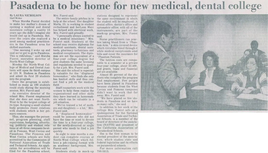 College Founder Marsha Fuerst had a vision to help underprivileged individuals improve their careers and lives through quality career training. She saw short-term programs as a great way for individuals to enter and advance in the health care field. More than five decades have passed since Marsha’s vision first came to life, but her passion to see students succeed remains at the heart of North-West College.